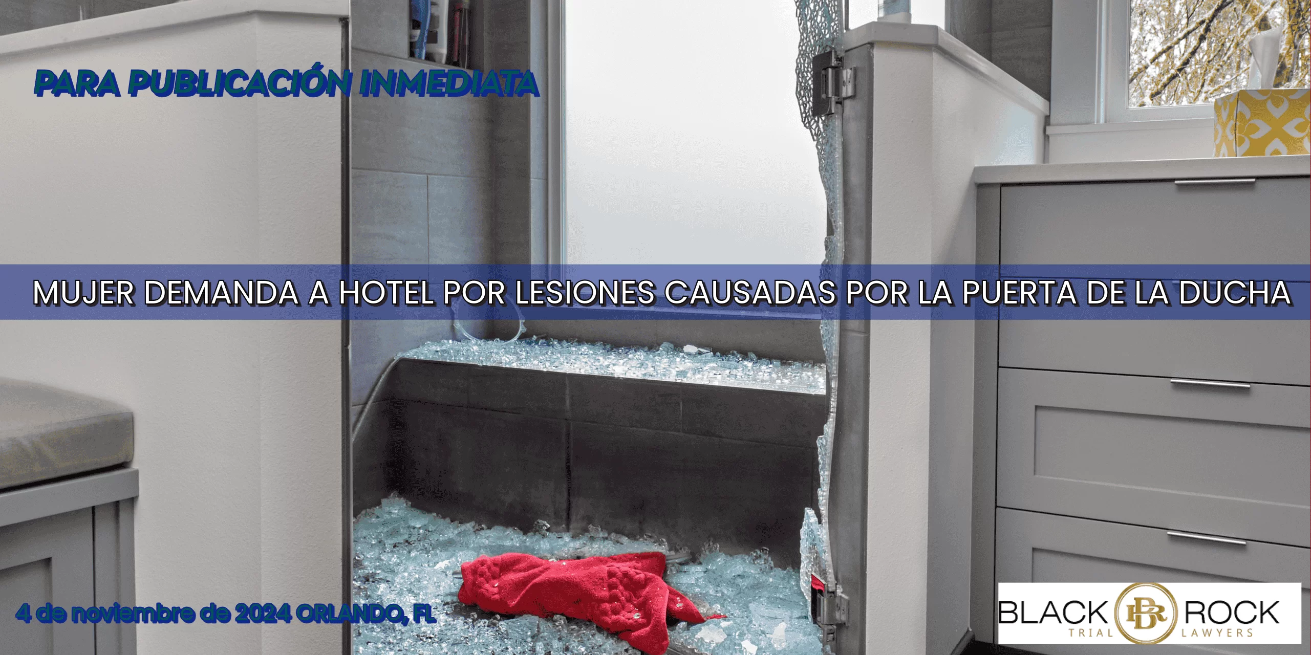 ORLANDO, FL [4 de noviembre de 2024] – Ashley Miller está demandando a GVL Hospitality, LLC, por las lesiones que sufrió cuando una puerta de vidrio de la ducha se rompió mientras se hospedaba en el hotel Four Points by Sheraton en Orlando el 12 de octubre de 2024. El demandado es el dueño del hotel. La demanda, presentada en el Tribunal del Noveno Circuito Judicial del Condado de Orange, Florida, alega negligencia y negligencia grave por parte del hotel.